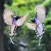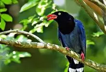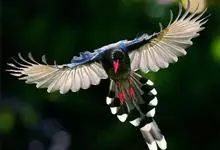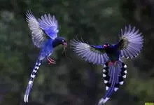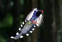 台湾蓝鹊:体长64至65厘米,翼展18至21厘米,尾长约40厘米,尾羽长占了总体长的三分之二。头、脸、颈、喉、胸都是黑色,黄色的眼珠包围黑色的瞳孔,鲜红色的鸟喙、双脚,…全部>>