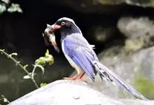 红嘴蓝鹊,别名山鹊、长尾鹊,是鸦科蓝鹊属的一种观赏性较强的大型鸣禽。该物种为体长54~65cm,头、颈、喉和胸黑色,头顶至后颈有一块白色至淡蓝白色或紫灰色块斑,其余上体紫蓝灰色或淡蓝灰褐色。尾长呈凸状,…全部>>