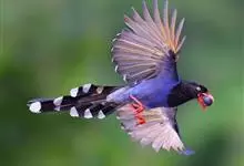 台湾蓝鹊:体长64至65厘米,翼展18至21厘米,尾长约40厘米,尾羽长占了总体长的三分之二。头、脸、颈、喉、胸都是黑色,黄色的眼珠包围黑色的瞳孔,鲜红色的鸟喙、双脚,…全部>>