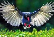 台湾蓝鹊:体长64至65厘米,翼展18至21厘米,尾长约40厘米,尾羽长占了总体长的三分之二。头、脸、颈、喉、胸都是黑色,黄色的眼珠包围黑色的瞳孔,鲜红色的鸟喙、双脚,…全部>>