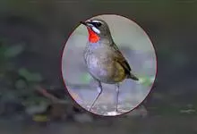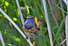 蓝点颏亦称“蓝喉歌鸲”,通称蓝靛颏儿。身体大小和麻雀相似,体长12-13厘米,体重17-18克。头部、上体主要为土褐色。眉纹白色。尾羽黑褐色,基部栗红色。颏部、喉部辉蓝色,下面有黑色横纹。下体白色。…全部>>