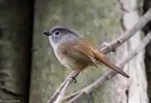 灰眶雀鹛,是画眉科、雀鹛属的鸟类。灰眶雀鹛是小型鸟类,头、颈和脸褐灰,头侧和颈侧深灰;上体和翅、尾表面橄榄褐;喉呈灰色;胸浅皮黄;腹部和胁部皮黄至赭黄,腹部中央浅淡。…全部>>