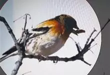 燕雀属小型鸟类,体长14-17厘米。嘴粗壮而尖,呈圆锥状。雄鸟从头至背辉黑色,背具黄褐色羽缘。腰白色,颏、喉、胸橙黄色,腹至尾下覆羽白色,两胁淡棕色而具黑色斑点。两翅和尾黑色,翅上具白斑。…全部>>