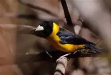 黄颈拟蜡嘴雀:小型鸟类,体长20-22厘米。嘴粗大,黑色。雄鸟整个头、颈、颏、喉和上胸辉黑色,两翅和尾亦为黑色,其余上体橙黄色,下体鲜黄色。雌鸟头、颈、颏、喉和上胸中央灰色或暗灰色,…全部>>
