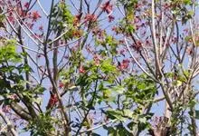 刺桐,是豆科刺桐属乔木植物。树皮灰褐色;分枝有圆锥形黑色皮刺;叶柄无毛,无刺;花密集,成对着生;花梗被茸毛,花冠红色;果实为圆柱形,微弯曲;花期3月;果期8月。刺桐因枝干间有圆锥形棘刺,故名。…全部>>