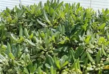 海桐 W. T. Aiton)是海桐科海桐属常绿灌木或小乔木;嫩枝被褐色柔毛;叶聚生于枝顶,浓密且有光泽;伞形花序顶生,花为白色,气味芳香;蒴果呈球形,三瓣裂开,红色;花期3-5月,果熟期9-10月。…全部>>