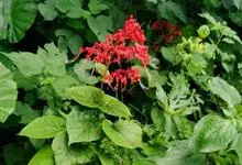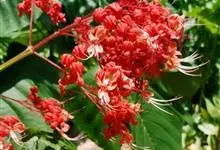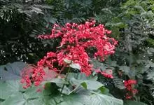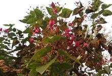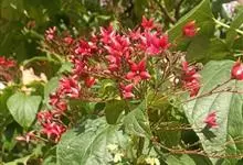 赪桐 Sweet)是唇形科、大青属灌木,高1-4米,叶片圆心形,顶端尖或渐尖,基部心形,边缘有疏短尖齿,表面疏生伏毛,二歧聚伞花序组成顶生,大而开展的圆锥花序,花序的最后侧枝呈总状花序,花萼红色,…全部>>