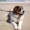 圣伯纳犬,别名巴里汉德,属于大型工作犬,肩高约65~90厘米,体重约50~90千克。圣伯纳犬身体强壮,被毛红褐色和白色相间,头圆而宽大。颈部强壮,胸宽深,背直。前肢长直,腕关节略前倾,后肢腿骨粗壮,…全部>>