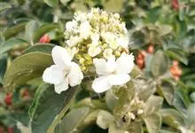 蝴蝶戏珠花 Miq.)是荚蒾科荚蒾属植物。落叶灌木,高达3米;当年小枝浅黄褐色。叶较狭,宽卵形或矩圆状卵形,有时椭圆状倒卵形。花序直径4-10厘米,外围有4-6朵白色、木型的不孕花。果实先红色后变黑色,…全部>>