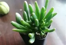 筒叶花月,是景天科青锁龙属的多年生草本植物。植株多分株,灌木状,茎较粗壮,圆柱形,表皮灰褐色;叶片肉质,互生,呈圆筒状,簇生于茎或分枝顶端,叶端呈斜截形,截面为椭圆形;花呈星状,淡白色;花期秋季。…全部>>