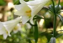 麝香百合:在中国台湾亦称铁炮百合。鳞茎球形或近球形,高2.5-5厘米;鳞片白色。茎高45-90厘米,绿色,基部为淡红色。叶散生,披针形或矩圆状披针形,两面无毛。花单生或2-3朵;花喇叭形,白色,筒外…全部>>