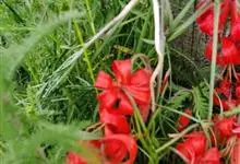 山丹是百合科百合属的多年生草本植物。鳞茎卵形或圆锥形,鳞片长圆形或长卵形,白色;叶散生茎中部,线形,边缘有乳头状突起;花单生或数朵成总状花序,花鲜红色,常无斑点,花被片反卷,…全部>>