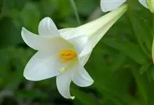 麝香百合:在中国台湾亦称铁炮百合。鳞茎球形或近球形,高2.5-5厘米;鳞片白色。茎高45-90厘米,绿色,基部为淡红色。叶散生,披针形或矩圆状披针形,两面无毛。花单生或2-3朵;花喇叭形,白色,筒外…全部>>