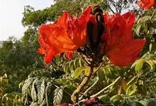 火焰树是紫葳科、火焰树属乔木,树皮平滑,灰褐色。奇数羽状复叶,对生,连叶柄长达45厘米;小叶13-17枚,叶片椭圆形至倒卵形,伞房状总状花序,顶生,密集;被褐色微柔毛,具有明显的皮孔;花冠一侧膨大,…全部>>