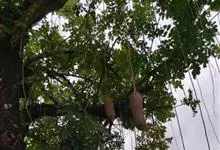 吊瓜树 Benth.)是紫葳科、吊灯树属植物。常绿乔木,高10~15米,枝下高约2米,胸径约1米。奇数羽状复叶交互对生或轮生,叶轴长7.5~15厘米;小叶7~9枚,长圆形或倒卵形。圆锥花序生于小枝顶端,…全部>>