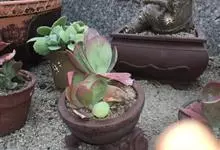唐印为景天科伽蓝菜属的多年生肉质草本植物。植株中型,株高50厘米,宽20厘米,多分枝;叶片肉质,对生,卵形,全缘,先端钝圆,叶片淡绿色至灰绿色,表面被有厚厚的白粉,光照充足时,叶缘呈红色;圆锥花序,…全部>>