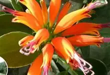 口红花 G.Don)是苦苣苔科,芒毛苣苔属常附生小灌木,茎长可达100厘米,圆柱形,叶对生,叶片革质,花数朵簇生茎或短枝顶端,花萼钟状筒形,花冠桔红色,裂片中央有暗紫色斑,花盘环状,蒴果线形,…全部>>