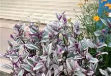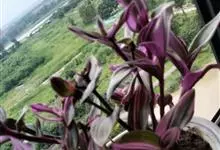 吊竹梅是鸭跖草科紫露草属的多年生草本植物;茎半肉质,柔弱披散至悬垂;叶椭圆形至长圆形,无柄,先端急尖至渐尖,基部鞘状抱茎,叶面紫绿色而杂有银白色,叶背紫色,全缘;花聚生于顶生叶状苞内,…全部>>