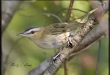 极北柳莺:体长11-13厘米,体小偏灰橄榄色,具明显的黄白色长眉纹,眼先及过眼纹近黑。上体概呈灰橄榄绿色;具甚浅的白色翼斑,大覆羽先端黄白色,形成一道翅上翼斑;中覆羽羽尖成第二道模糊的翼斑;下体白色…全部>>