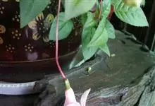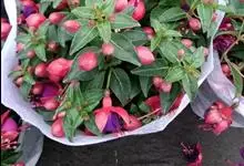 倒挂金钟是柳叶菜科倒挂金钟属亚灌木植物。茎直立,多分枝;幼枝带红色,被短柔毛与腺毛,老时渐无毛;叶对生,卵形或窄卵形,脉常带红色;常带红色,被短柔毛与腺毛;花筒红色,筒状钟形,…全部>>