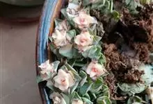 唐印为景天科伽蓝菜属的多年生肉质草本植物。植株中型,株高50厘米,宽20厘米,多分枝;叶片肉质,对生,卵形,全缘,先端钝圆,叶片淡绿色至灰绿色,表面被有厚厚的白粉,光照充足时,叶缘呈红色;圆锥花序,…全部>>