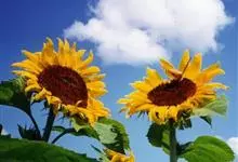 向日葵:是桔梗目、菊科、向日葵属的植物。因花序随太阳转动而得名。是一年生高大草本植物。茎粗壮,高1-3米,不分枝或有时上部分枝,被白色粗硬毛。叶互生,卵状心形或卵形,顶端急尖或渐尖,基生3出脉,…全部>>