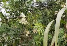 光荚含羞草 Kuntze)是豆科,含羞草属落叶灌木,高可达6米;小枝无刺,二回羽状复叶,叶轴无刺,被短柔毛,小叶片线形,革质,先端具小尖头,中脉略偏上缘。头状花序球形;花白色;花萼极小;花瓣长圆形,…全部>>