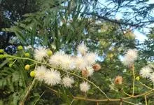 光荚含羞草 Kuntze)是豆科,含羞草属落叶灌木,高可达6米;小枝无刺,二回羽状复叶,叶轴无刺,被短柔毛,小叶片线形,革质,先端具小尖头,中脉略偏上缘。头状花序球形;花白色;花萼极小;花瓣长圆形,…全部>>