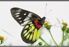 报喜斑粉蝶是粉蝶科斑粉蝶属的一种动物,又名红肩粉蝶、藤粉蝶等。幼虫群集性很强,从同一卵块孵化出的幼虫,幼龄期全部群集在一起取食,高龄幼虫常分散成小群。幼虫群集危害叶片,造成秃枝,严重者可将树吃成光杆,…全部>>