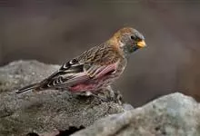 粉红腹岭雀:为燕雀科岭雀属的鸟类。体重25-34克,体长150-182毫米。是一种中等体型的深色岭雀。两翼及下体玫红色。东北亚种的雄鸟额、顶冠及脸灰;上背黄褐;上体深褐,…全部>>