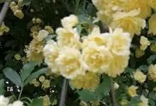 黄木香花 Rehd.)是蔷薇科、蔷薇属植物,为木香花的变型品种,攀缘小灌木,高可达6米。小叶3-5枚,稀7枚,小叶片椭圆形或长圆状披针形,先端急尖或稍钝,基部近圆形或宽楔形,边缘有紧贴细锯齿。花小型,…全部>>