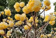 结香是瑞香科结香属落叶灌木。又名岩泽兰、三桠皮、三叉树、蒙花、山棉皮等。高约0.7-1.5米,小枝粗壮,褐色,常作三叉分枝,幼枝常被短柔毛;叶在花前凋落,长圆形,披针形至倒披针形,先端短尖,…全部>>