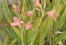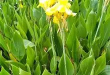 粉美人蕉:是一种球根草本植物。根茎延长,株高1.5-2米;茎绿色。叶片披针形;总状花序疏花,单生或分叉,稍高出叶上;苞片圆形,褐色,花黄色,无斑点;有多种园艺栽培品种,颜色从粉、橙红色及具带红色斑点…全部>>