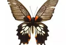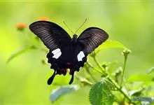 玉斑凤蝶Papilio helenus 别名白纹凤蝶,是凤蝶科凤蝶属美凤蝶亚属大型种类。雌雄同型;体翅皆黑色,后翅正面中室外有3个并列的白色斑,亚外缘有1列模糊的新月形红色斑,…全部>>