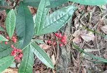 朱砂根是报春花科紫金牛属植物,又名铁凉伞、红铜盘、百两金、大罗伞、开喉箭等,为常绿小灌木,高1~2米,茎粗壮,无毛,除侧生特殊花枝外,无分枝,叶片革质或坚纸质,椭圆形、椭圆状披针形至倒披针形,…全部>>