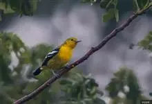 黑翅雀鹎:体重14-19克,体长11.5-16厘米。是树栖性绿色小鸟,外形与叶鹎相似,下体黄色。鸟喙直,翼长而尖,总体羽毛是绿色和黄色相结合,翼上具两道明显近白色横纹,翼近黑而羽缘白。…全部>>
