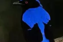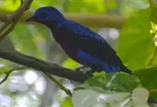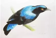 和平鸟中型鸟类,体长24~28厘米。眼红色,嘴、脚黑色。雄鸟从头顶到尾上覆羽等整个上体辉蓝色具紫色光泽,其余体羽黑色。雌鸟通体铜蓝色,仅飞羽黑褐色。常见的低地留鸟,…全部>>