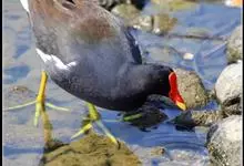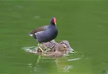 黑水鸡:是鹤形目、秧鸡科的鸟类,共有12个亚种。中型涉禽,体长24-35厘米。嘴长度适中,鼻孔狭长;头具额甲,后缘圆钝;嘴和额甲色彩鲜艳。翅圆形,第2枚初级飞羽最长,或第2枚和第3枚初级飞羽等长,…全部>>