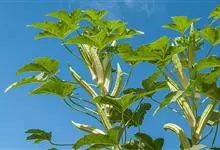 黄葵是锦葵科秋葵属的一年生或二年生草本植物。植株高1-2米,被粗毛;叶通常掌状深裂,裂片披针形至三角形,边缘具不规则锯齿,偶有浅裂似械叶状,两面均疏被硬毛,叶柄疏被硬毛;花单生于叶腋间,…全部>>
