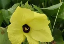 咖啡黄葵 Moench)亦称黄秋葵,是锦葵科一年生草本植物。茎圆柱形,疏生散刺。叶掌状,裂片阔至狭,托叶线形,被疏硬毛。花单生于叶腋间,花梗疏被糙硬毛,小苞片钟形;花萼钟形,密被星状短绒毛;花黄色,…全部>>