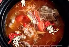 至牛腩七八成熟时,揭去盖,加入白萝卜块,再盖好盖继续用小火炖1小时左右; 至牛腩和白萝卜块熟烂熟时,放入精盐、味精、胡椒粉调好口味即可。全部>>