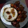 烤肉饭主料由土豆,烤肉、青豆等食材,辅料由葱,姜,蒜,洋葱,生抽,老抽,蜂蜜,耗油,…全部>>
