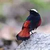 红头咬鹃: 体大,体长约33厘米,体重75-110克。头、颈暗绯红色;背、肩锈褐色。两翅黑色,翅上覆羽和内侧飞羽密被白色细虫蠹斑纹,初级飞羽黑色,外侧具白色羽缘;腰和尾上覆羽较多锈色。中央尾羽深栗色,…全部>>
