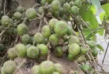 大果榕是桑科榕属的小乔木,株高可达10米;幼枝被柔毛;叶互生,宽卵状心形或近圆形;雄花无梗、匙形、花丝长,雌花生于雌株榕果内,子房白色;榕果簇生于树干基部或老茎短枝上、扁球形或陀螺形,…全部>>