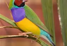 七彩文鸟是梅花雀科、鹦雀属鸟类。头部羽色有黑、红、黄之别。幼鸟体色初期为灰色,下部较淡,腹白;背部为橄榄绿,胸部呈葡萄色,成熟后面部会变成红色或黄色。雄性背部绿色,紫色胸前有圆形或椭圆形斑块,…全部>>