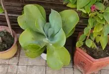 唐印为景天科伽蓝菜属的多年生肉质草本植物。植株中型,株高50厘米,宽20厘米,多分枝;叶片肉质,对生,卵形,全缘,先端钝圆,叶片淡绿色至灰绿色,表面被有厚厚的白粉,光照充足时,叶缘呈红色;圆锥花序,…全部>>