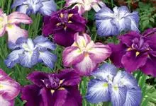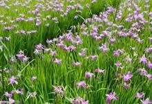 花菖蒲:是玉蝉花的变种。多年生宿根挺水型水生花卉。根状茎短而粗,须根多并有纤维状枯叶梢,叶基生,线形,叶中脉凸起,两侧脉较平整。花葶直立并伴有退化叶1-3枚。花大直径可达15厘米。外轮三片花瓣呈椭圆…全部>>