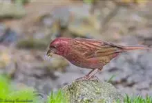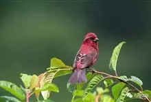 酒红朱雀小型鸟类,体长13~15厘米。雄鸟通体深红色,头部深朱红或棕红色,下背和腰玫瑰红色,眉纹粉红色而具丝绢光泽。两翅和尾黑褐或灰褐色、具暗红色狭缘,内侧两枚三级飞羽具淡粉红色先端。…全部>>