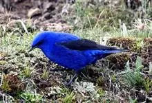 蓝大翅鸲是鹟科、大翅鸲属小型鸟类,体长19-21厘米。两翅尖长。雄鸟通体鲜紫蓝色具金属光泽。两翅和尾黑色。雌鸟上体灰褐色,头、颈、翕具棕白色纵纹,翅上有白色翅斑。虹膜暗褐色,嘴、脚黑色。…全部>>
