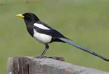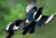 喜鹊:是鸦科、鹊属的一种鸟类。共有11个亚种。体长40-50厘米,雌雄羽色相似,头、颈、背至尾均为黑色,并自前往后分别呈现紫色、绿蓝色、绿色等光泽,双翅黑色而在翼肩有一大形白斑,尾远较翅长,呈楔形,…全部>>